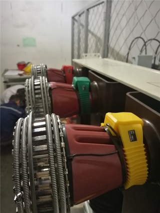 9月17日下午到達(dá)**能源公司,這個(gè)測溫系統(tǒng)需要安裝的有180個(gè)測溫點(diǎn),2臺RM-C3000G接收主機(jī)和 1臺RM-C3000E接收主機(jī)。本次工程訂貨安裝非常緊急,客戶要求所有測溫點(diǎn)必須在19日0時(shí)前安裝完成。其中有5個(gè)柜子特別緊急必須在17日21時(shí)點(diǎn)之前必須完成。根據(jù)客戶要求進(jìn)行柜號排列,并做記錄,然后按順序找出10KV配電室這5個(gè)開關(guān)柜對應(yīng)的測溫點(diǎn)序號進(jìn)行安裝。小車推出后發(fā)現(xiàn)觸頭為倒錐形,合金片收緊困難,溫度探頭難以安裝,施工人員克服種種困難,保質(zhì)保量并提前2小時(shí)完成,主機(jī)全部接收到已安裝探頭的溫度數(shù)據(jù)。